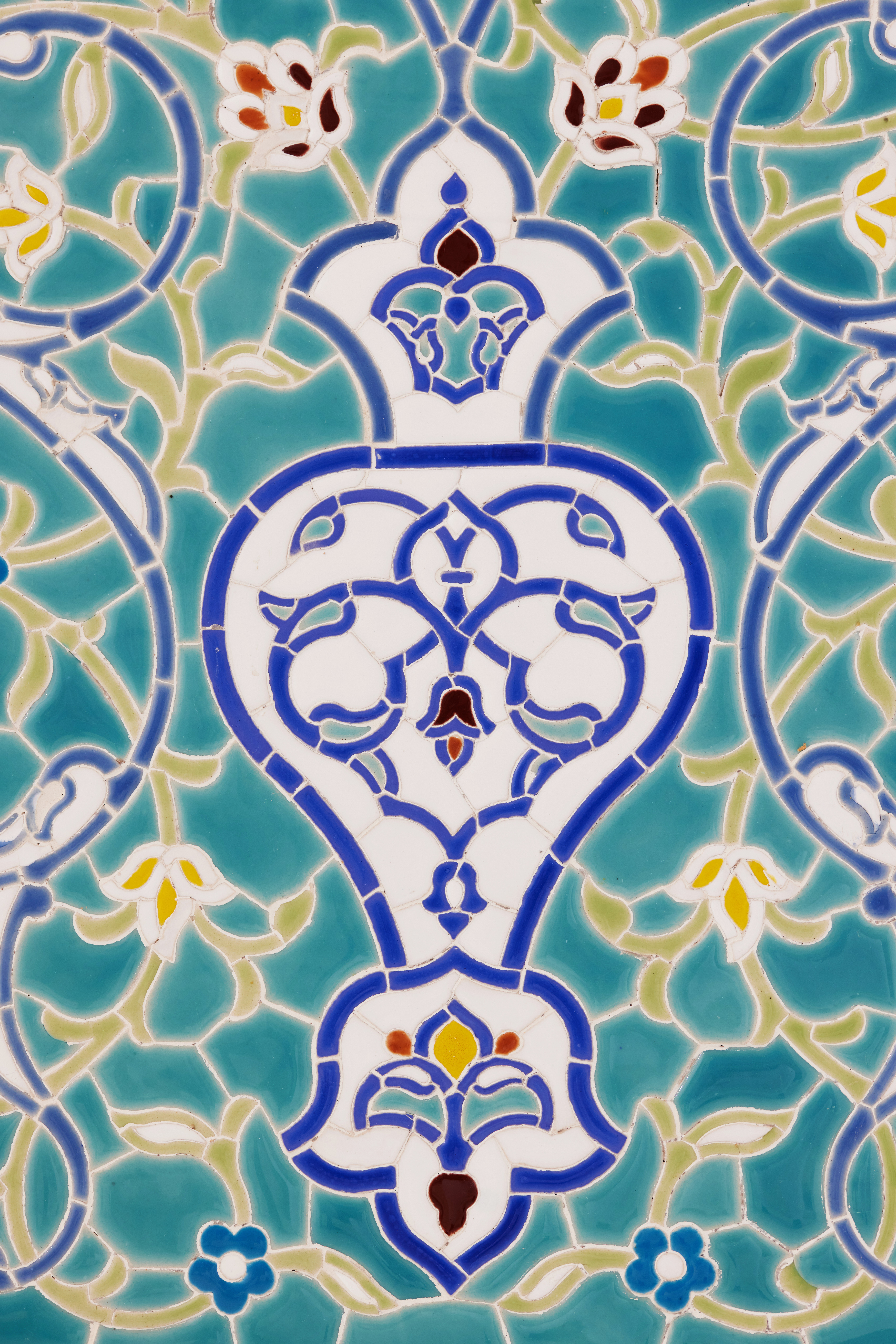 Shaped in a classic mihrab silhouette, this panel features a flowing composition of intertwined vines and blossoms set against a luminous turquoise background. Soft tones of ivory, light blue, and subtle earthy accents bring the floral elements to life, creating a harmonious balance between structure and natural movement.