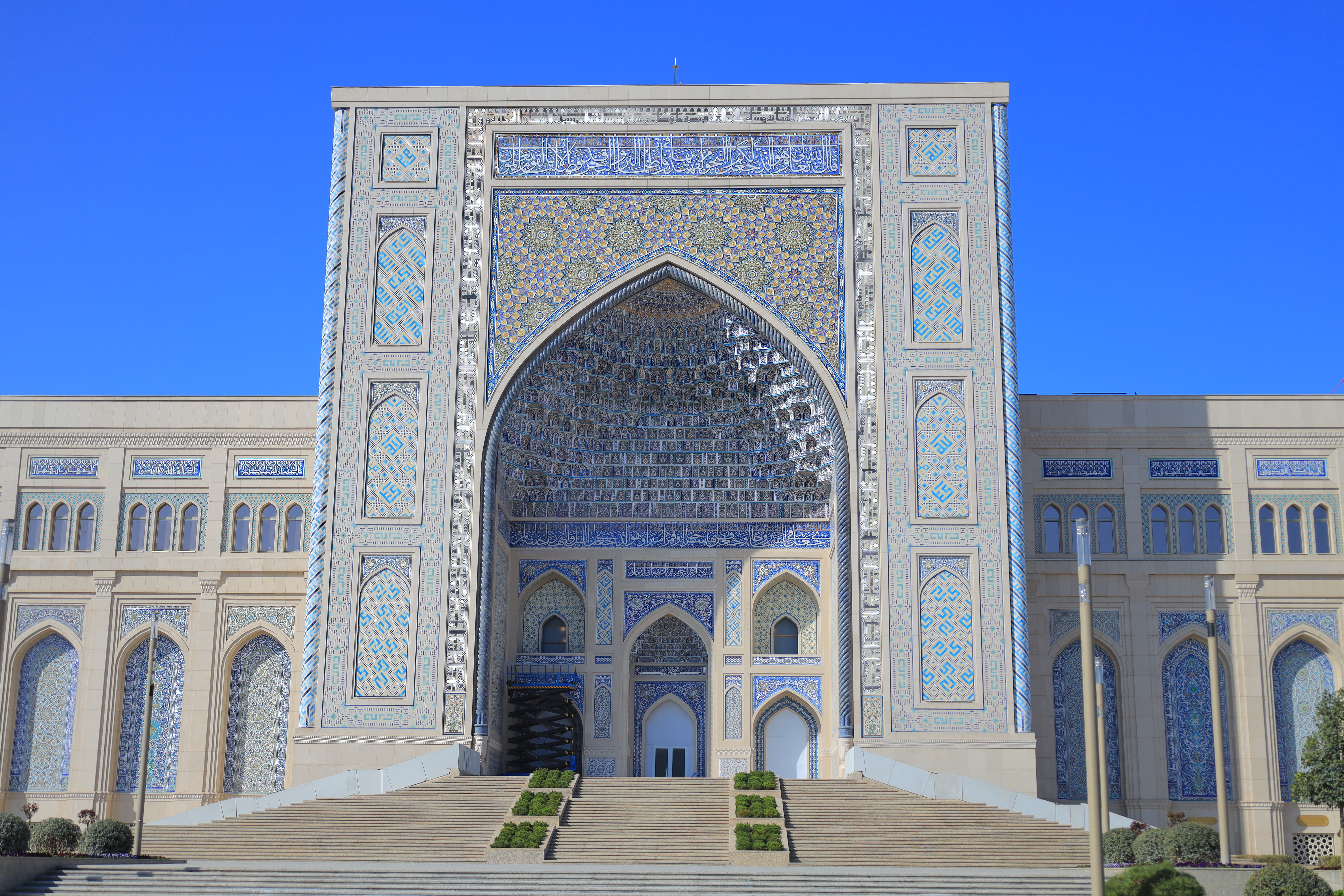 The majestic building of the center consists of three floors and is made in the style of ancient architectural monuments. The traditional dome and facade, a unique combination of national ornaments give it a special beauty and grandeur. On four sides of the complex there are 34-meter high portals, and in the center there is a 65-meter high dome.